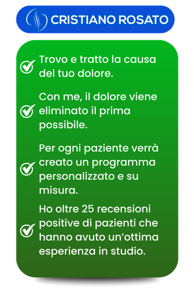 Dopo anni di tentativi con diversi professionisti per affrontare problemi persistenti di cervicale e postura, senza mai ottenere risultati significativi, ho finalmente trovato in Cristiano Rosato un punto di svolta. Fin dal primo incontro ho percepito non solo la sua competenza tecnica, ma anche una sensibilità rara, una capacità di ascolto profondo e un’intelligenza manuale guidata da un’intuizione precisa e mai invadente. Cristiano lavora con serietà, passione e una professionalità che va ben oltre la media: ogni trattamento è calibrato sulla persona, mai standardizzato, sempre in ascolto del corpo e dei suoi segnali più sottili. Dopo un breve periodo ho cominciato a notare miglioramenti concreti e duraturi, che continuano a evolversi nel tempo, portando beneficio non solo fisico, ma anche a livello di benessere generale. Lo consiglio con convinzione a chiunque stia cercando un professionista che unisca tecnica, empatia e vera dedizione al proprio lavoro. Grazie, Cristiano, per ciò che fai e per come lo fai.